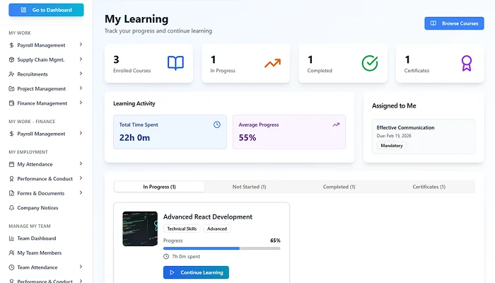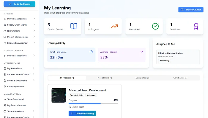 Investing in employee development drives retention, enhances skills, and ensures that your team stays competitive. Synclo Academy gives you the tools to design effective training programs, track employee progress, and make learning a continuous process.