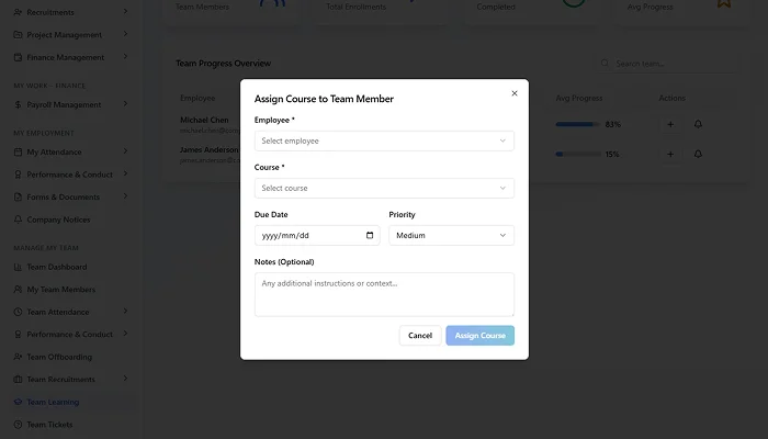 Manage industry-specific compliance training and track certifications, ensuring your team is always up to date with the latest standards.