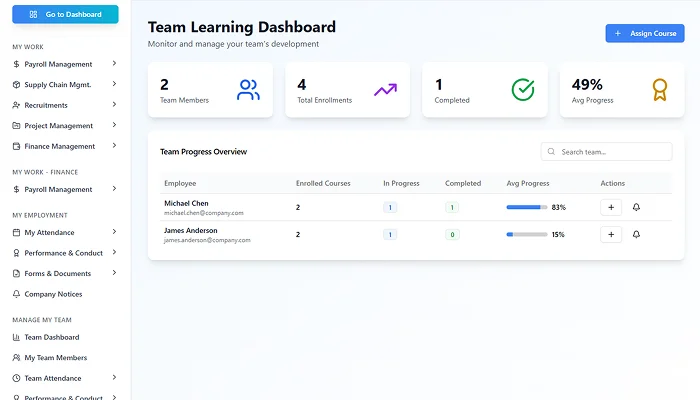 Seamlessly integrate Synclo Academy with your HR software to align training data with performance appraisals and career development plans.