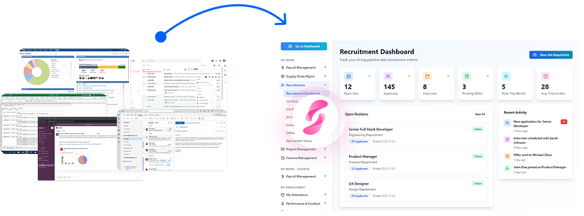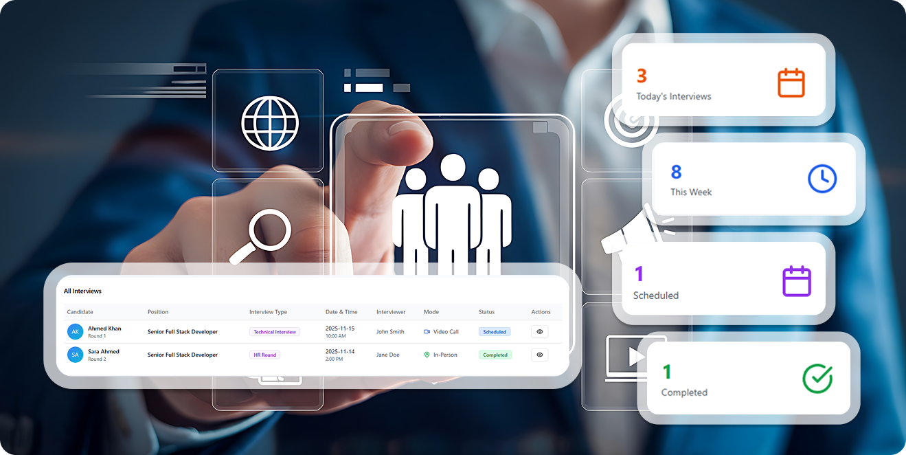 Synclo HireHub brings every stage of recruitment into one unified platform. From managing job openings and candidates to interviews and approvals, HireHub removes manual gaps and keeps hiring teams aligned. With smart automation and AI-assisted insights, recruiters can focus on evaluating talent instead of chasing updates, while leaders gain clear visibility into hiring progress across the organization.