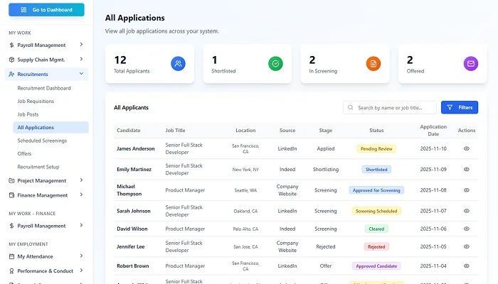 Synclo HireHub gives hiring teams a centralized view of candidates, interviews, and decisions. Every step is tracked, documented, and accessible, ensuring recruitment stays organized and collaborative from start to finish.