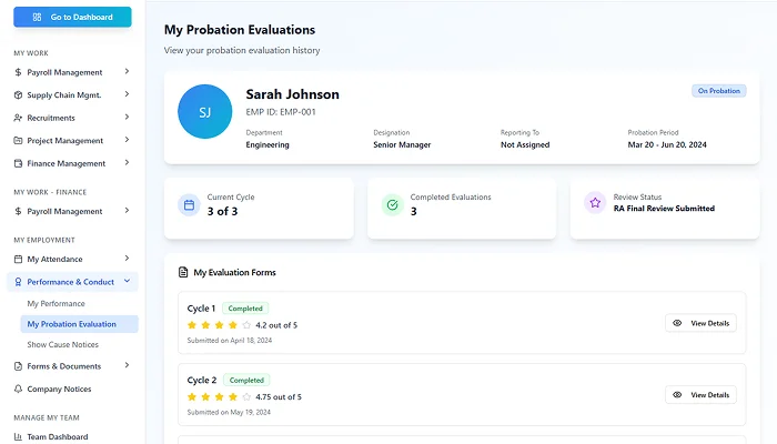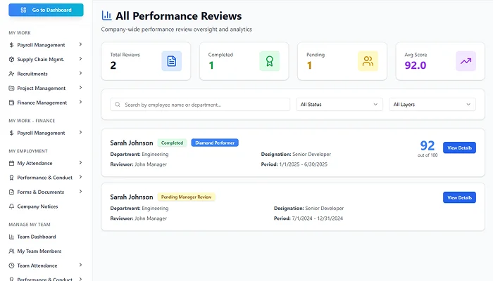Empower managers and teams to align individual performance with organizational goals. Synclo’s Performance Management system helps you evaluate, reward, and grow your workforce through continuous feedback, appraisal cycles, goal tracking, and performance analytics—all from a single integrated dashboard.