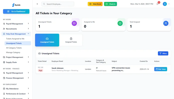 Synclo Resolve brings all support tickets into one unified platform, making it easy to manage, assign, and resolve issues efficiently. With AI-powered features, you can automate workflows, prioritize tickets, and gain insights into team performance, ensuring your support team delivers exceptional service every time.