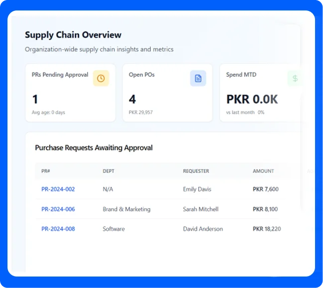 Synclo gives you a real-time view of purchasing activity so procurement stays controlled, fast, and transparent. Track requests, approvals, and orders without delays.